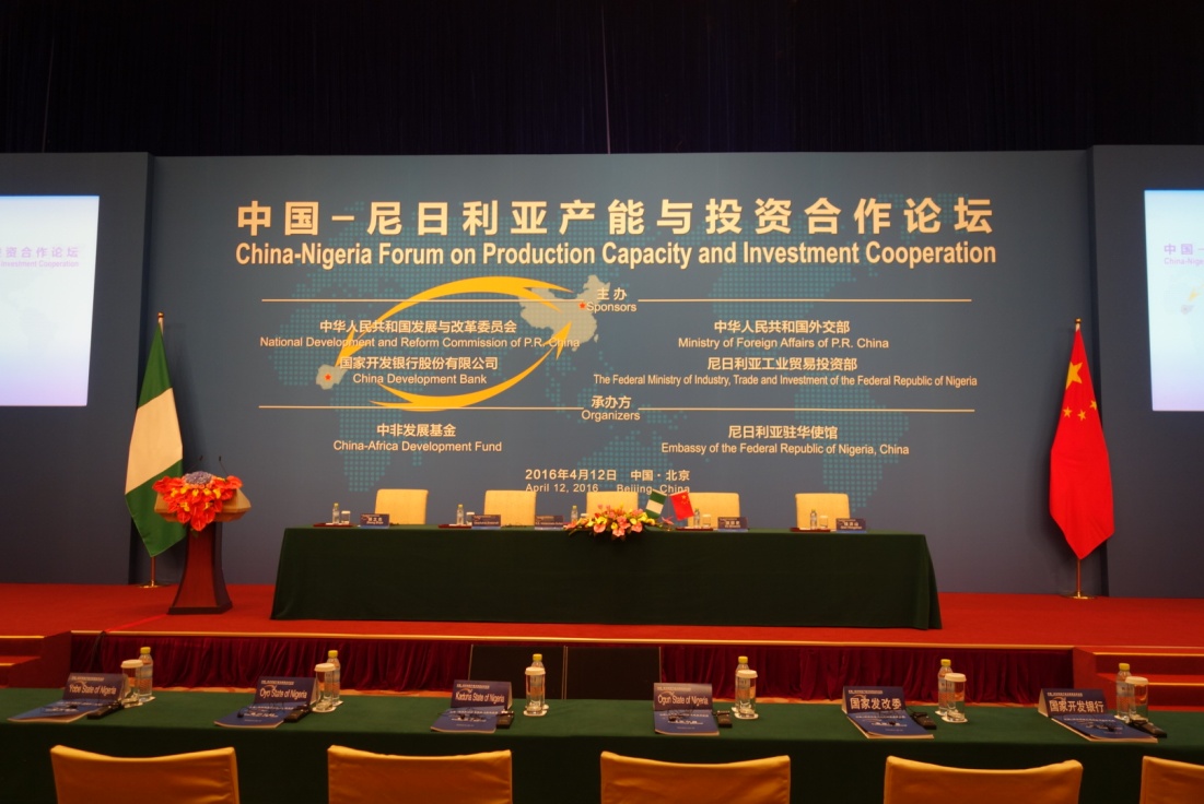 2016年4月12日,应中非发展基金及奥贡广东自贸区邀请,公司执行董事、行政总裁崔向东、副总裁程昕、海外事业部高级总监崔保玉、海外事业部总监刘新沂、投资管理部高级总监潘建丽一行参加了由国家发改委、国家开发银行、中非发展基金、外交部、尼日利亚工业贸易投资部、尼日利亚驻华使馆于钓鱼台国宾馆联合举办的“中国-尼日利亚产能与投资合作论坛”,该论坛也是尼日利亚总统布哈里本次访华的重要议程之一。
