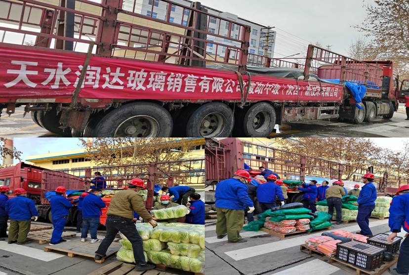 12月24日中午,西安好利来食品有限公司得知基地驻厂员工早餐存在问题的消息后,立即送来一车蛋糕、面包等,爱心助力疫情防控。12月25日,陕西2021年第一场雪不期而至,公司客户天水润达玻璃销售有限公司克服天寒地冻困难,紧急安排人员和车辆,连夜将蔬菜、米、面、油、肉、蛋等装车,长途跋涉,于26日早上9:00将援助物资送到陕西基地。