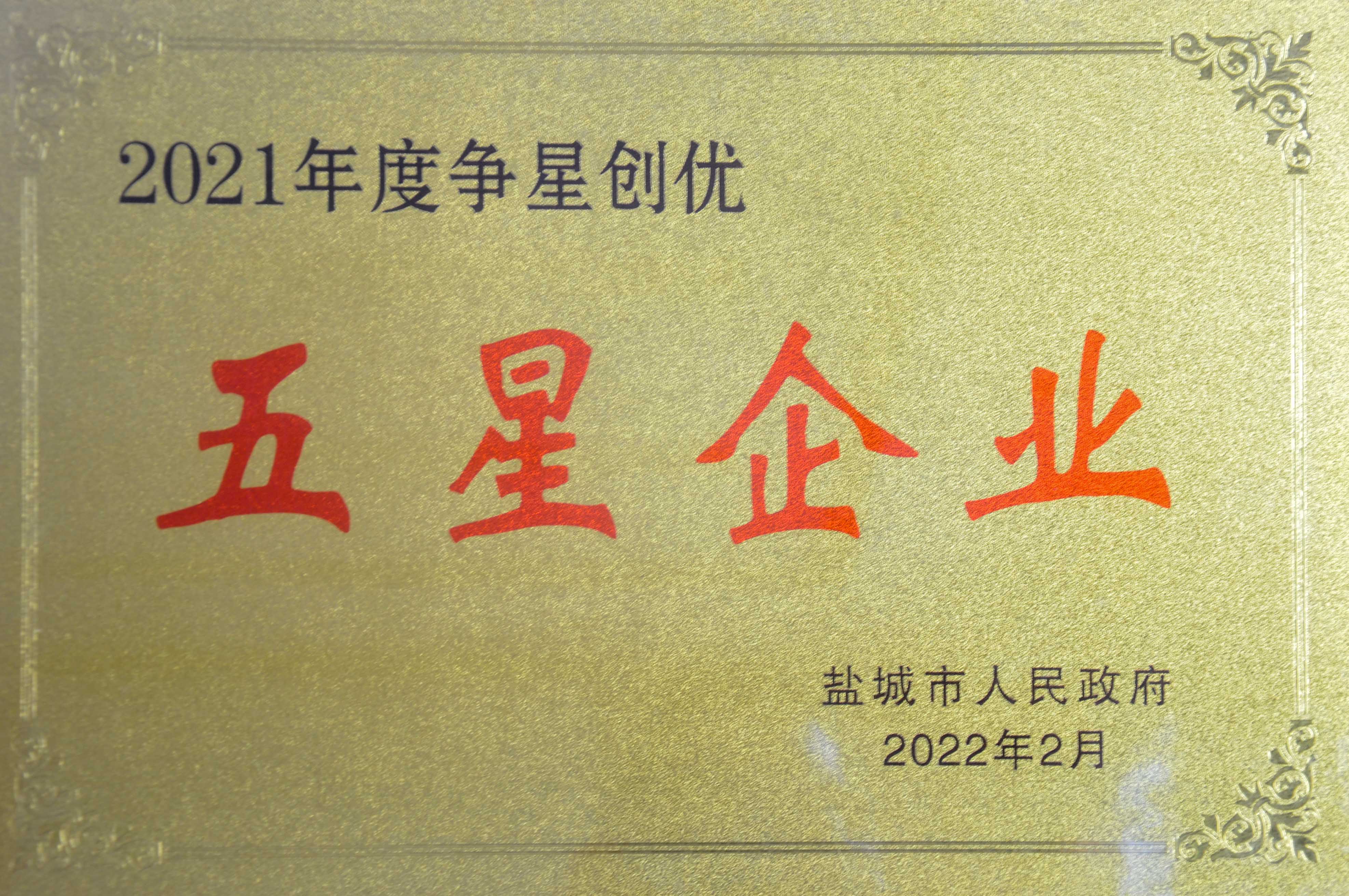 东台基地喜获盐城市2021年度五星企业荣誉称号